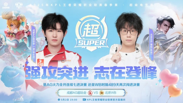 直播吧5月2日讯 2025KPL春季赛今日比赛是由成都AG超玩会对阵到北京WB!