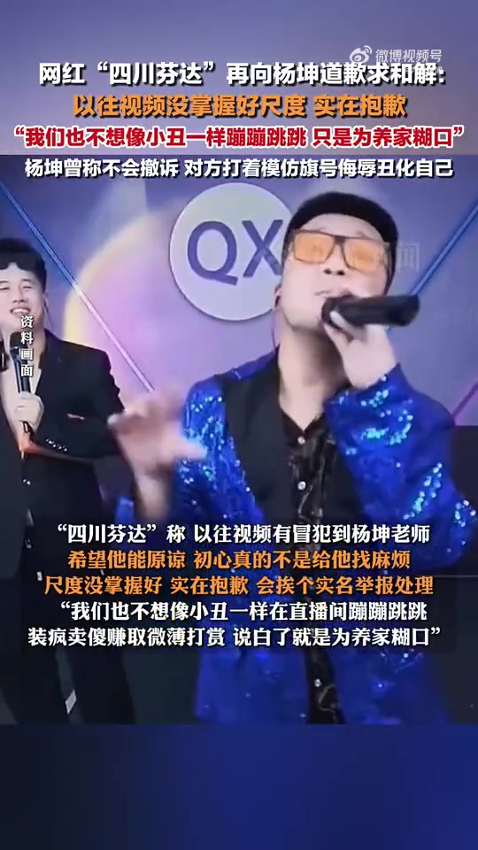 “四川芬达”称,以往视频有冒犯到杨坤老师希望他能原谅,初心真的不是给他找麻烦,尺度没掌握好,实在抱歉,会挨个实名举报处理,“我们也不想像小丑一样在直播间蹦蹦跳跳装疯卖傻,赚取微薄打赏,说白了就是为养家糊口”。