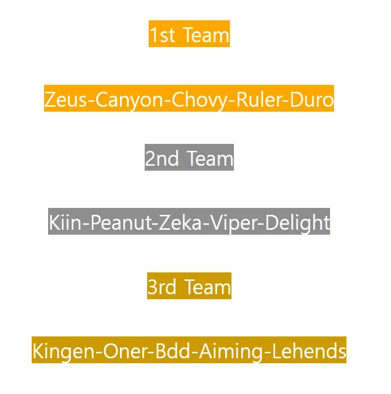 直播吧5月3日讯 近日,LCK常规赛第一轮的比赛已经结束,韩国网友也在其论坛上开启第一轮最佳阵容的投票,目前得票最高的阵容分别是:上单Zeus、打野Canyon、中单Chovy、下路Ruler以及辅助Duro。