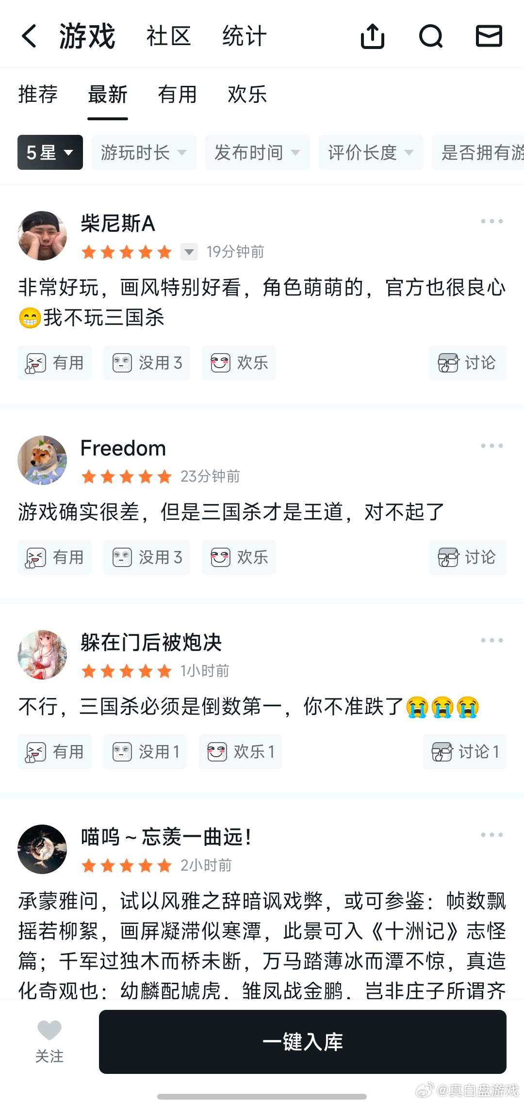 《无限暖暖》上线Steam差评不断 《三国杀》玩家刷好评誓死捍卫倒一宝座