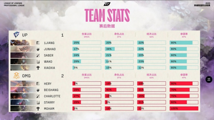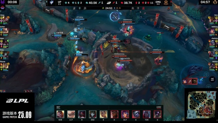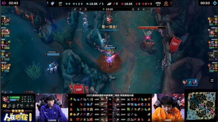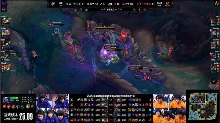 直播吧5月4日讯 2025LPL第二赛段常规赛继续进行,今日涅槃组比赛由UP对阵OMG!