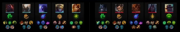 蓝色方WE:Cube赛恩、Monki潘森、Karis瑞兹、Taeyoon伊泽瑞尔、Vampire女坦