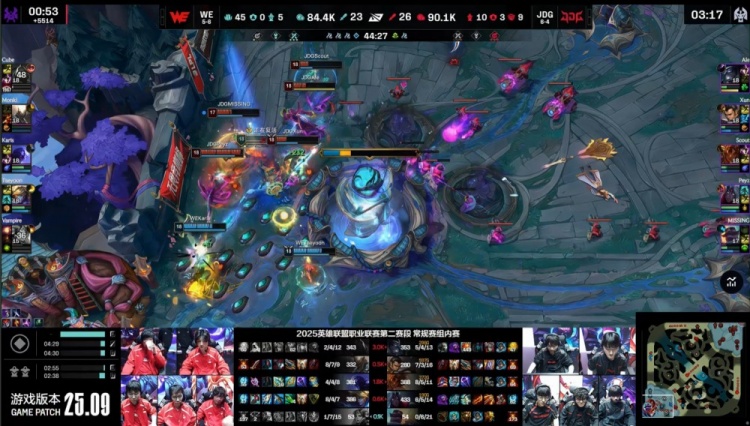 直播吧5月6日讯 2025LPL第二赛段常规赛继续进行,今日首场比赛由JDG对阵WE!