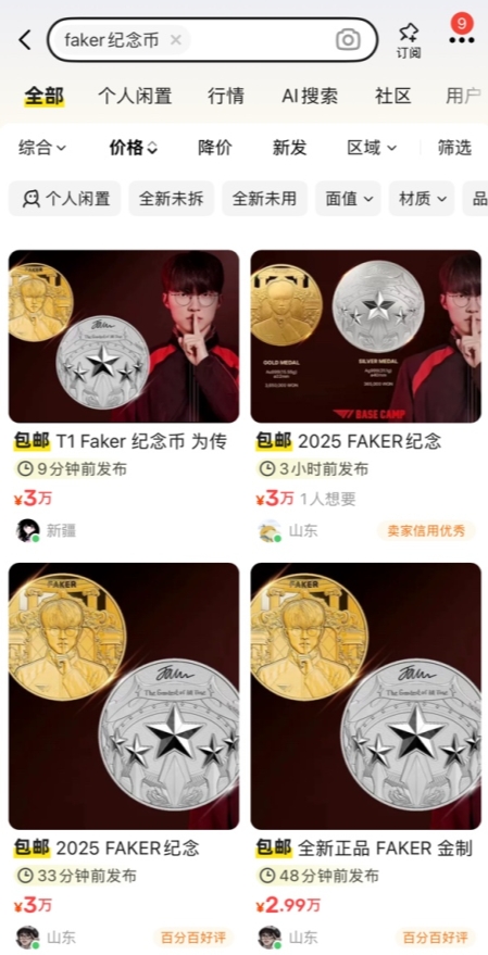 直播吧5月6日讯 明日韩国造币公社将正式发售Faker纪念金币,今日已有用户在闲鱼上提前上架纪念金币转售,最高售价为3万元。