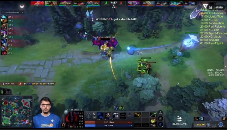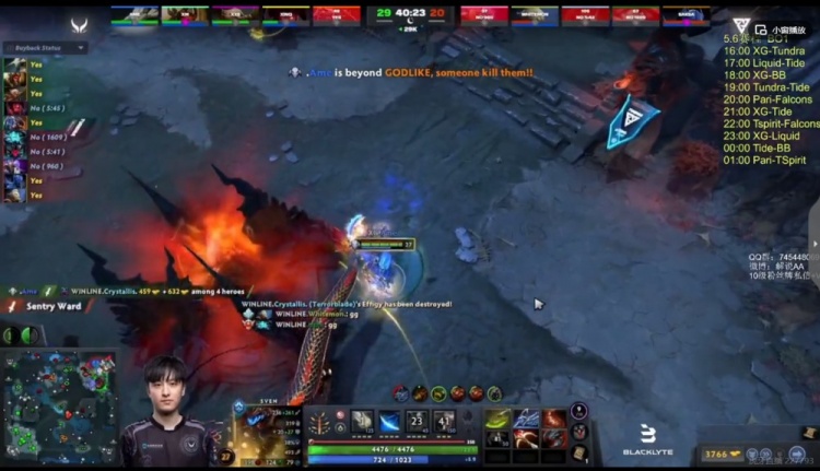 【23分钟】中路团战Xxs人马踩先手被跳刀规避,Tundra频繁拉扯逼出了Ame斯温大招+BKB。Tundra强杀Xxs人马之后回头拿下肉山!bzm蓝猫带盾!