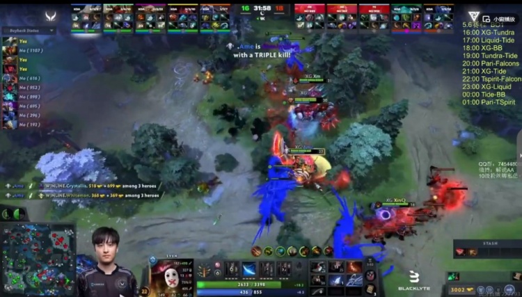 【28分钟】天辉经验符处XG三核打出完美配合秒掉了Crystallis的TB!33的黑贤和whitemon百戏大王也被追死!XG还了一波漂亮的0换3!