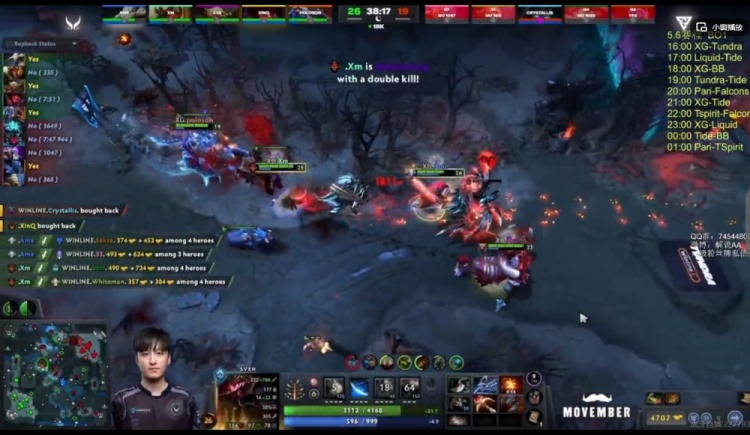天辉XG:Xm兽王、poloson杰奇洛、XinQ暗影恶魔、Xxs半人马、Ame斯温