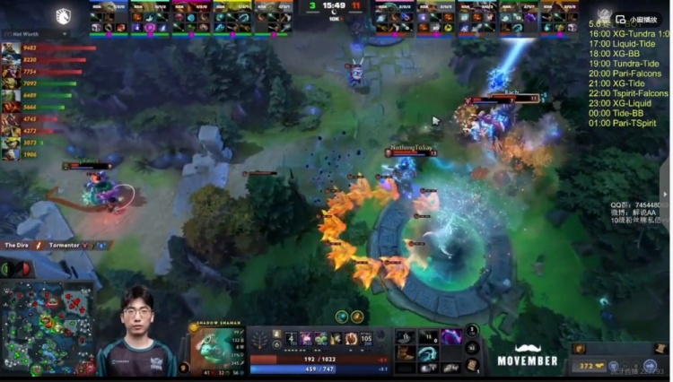 【38分钟】双方对开雾,Tidebound找到机会秒掉了Nisha火猫,顺势先拆了中路高地!SaberLight沙王跳大配合队友没秒掉shiro飞机,被他撒旦吸回来了!Liquid交出全部买活,Tidebound也交出了planet小Y+NTS船长的买活!Nisha火猫买活死!shiro飞机三轮撒旦都用上了,Tidebound再拆上路高地!