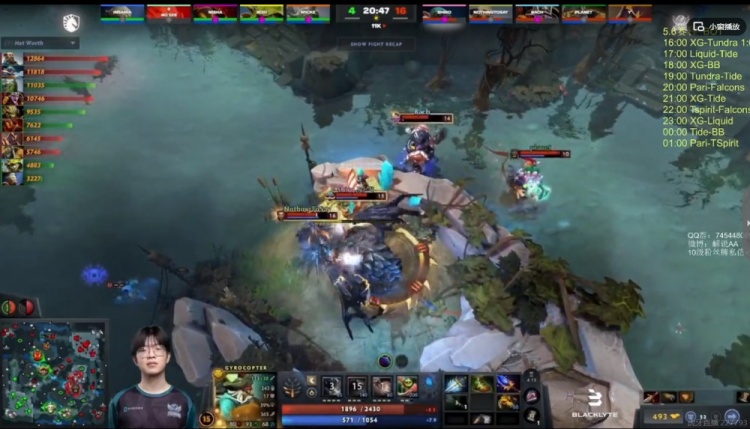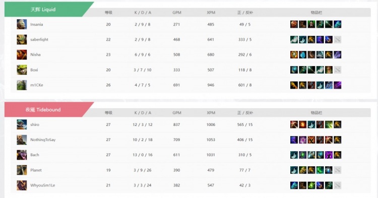 【12分钟】Liquid开雾冲高坡第一波没秒掉Bach伐木机,y队沉默术士给大配合planet小Y留住了Nisha火猫!将火猫强杀之后Liquid没伤害了!这波Tidebound打出0换3!经济差7K了!