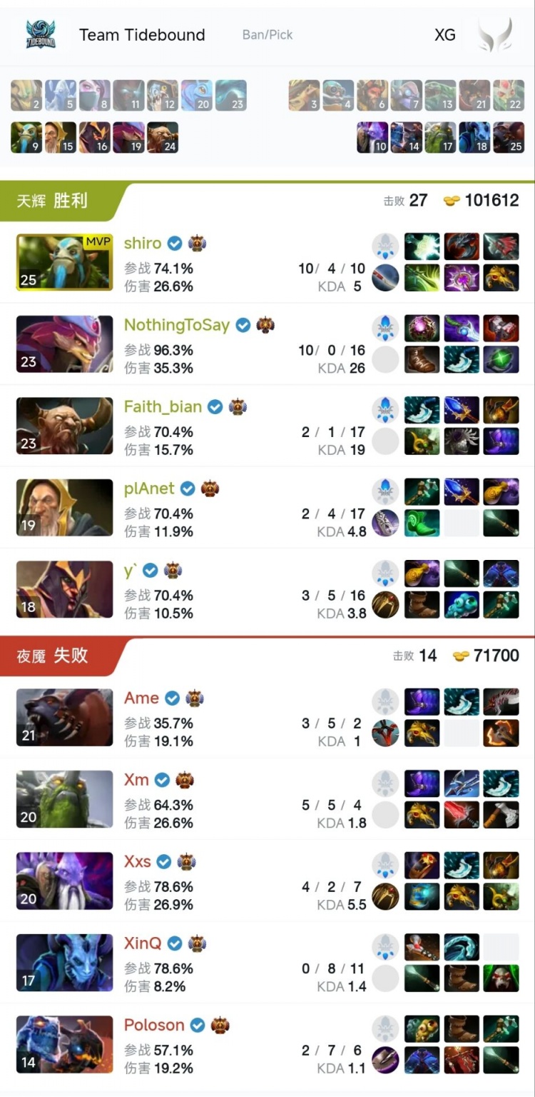 本轮过后,Tidebound和XG均为3战2胜1负。
