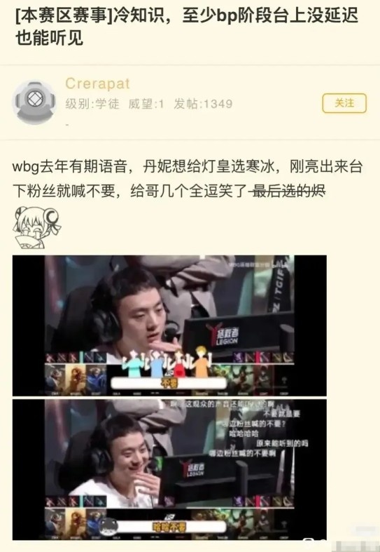 这种情况在LPL也不是首例,此前Tian在直播时就曾透露过“能听到台下观众一直在骂”,而WBG放出的赛事语音里Light也听到过“粉丝让不要选寒冰的声音”;