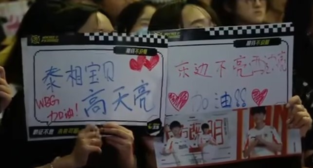 直播吧5月7日讯 2025LPL第二赛段登峰组常规赛,NIP对战WBG的比赛,一向谨慎的导播却切出了观众席“金玉良缘”的应援牌子。