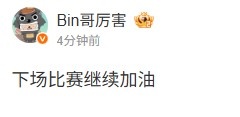 >好稳健的文案🫠Bin赛后微博:下场比赛继续加油