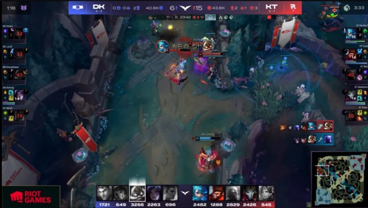 蓝色方DK:Siwoo杰斯、Lucid莉莉娅、ShowMaker飞机、Aiming卡莎、BeryL芮尔