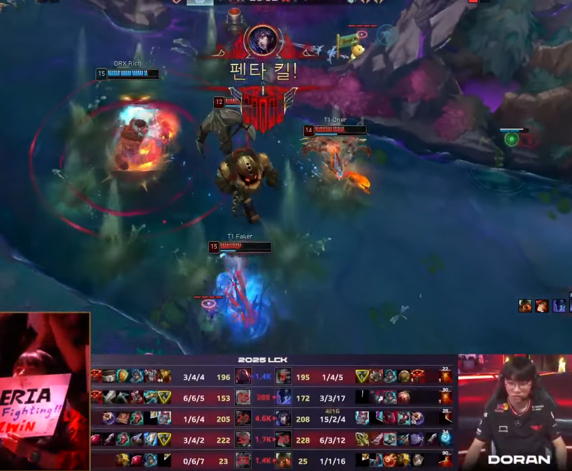 直播吧5月8日讯 在今日的LCK常规赛T1对阵DRX的第二局比赛中,Faker选出阿狸打出五杀,帮助队伍收获大龙。
