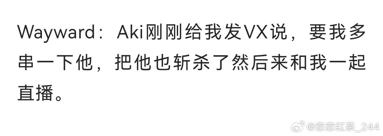 流量被你玩明白了?wayward向Aki道歉:说错话了对不起毛哥!