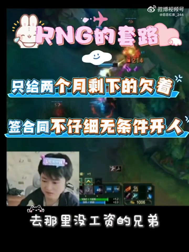焕峰直播透露RNG欠薪套路:给两个月工资剩下欠着 然后无条件开人