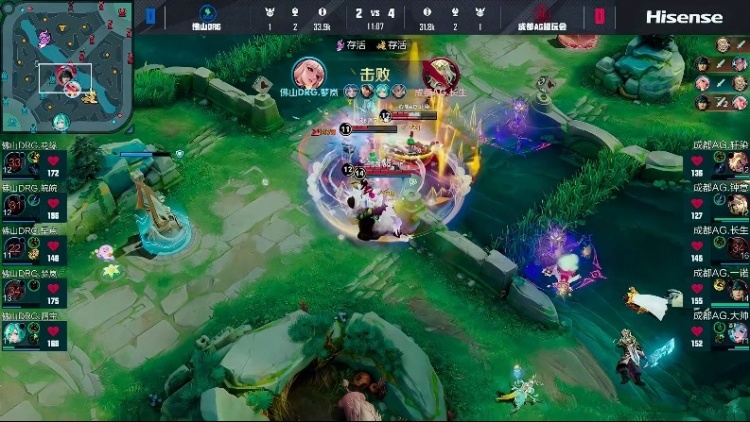 【11:00】AG主动对暴君动手,随后DRG被AG骗过来开团,AG直接强打,DRG被狂铁拦住位置,奕星直接被秒掉,随后苍在后排安稳输出成功打出1换4!