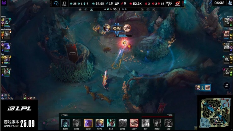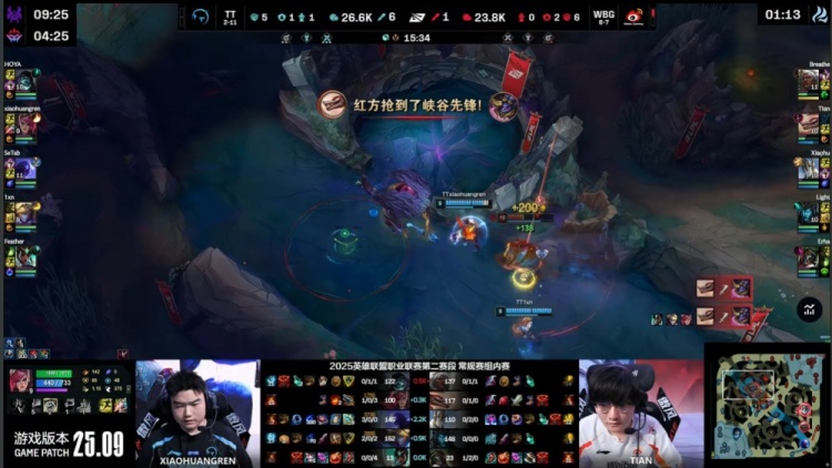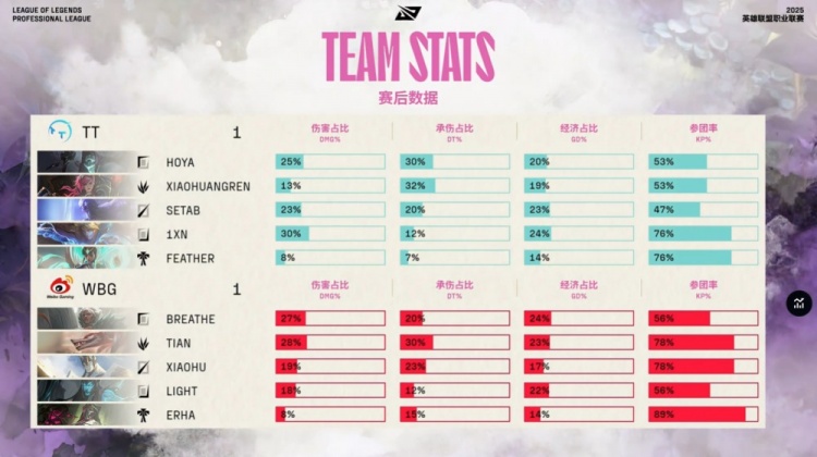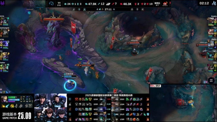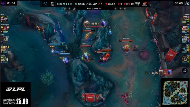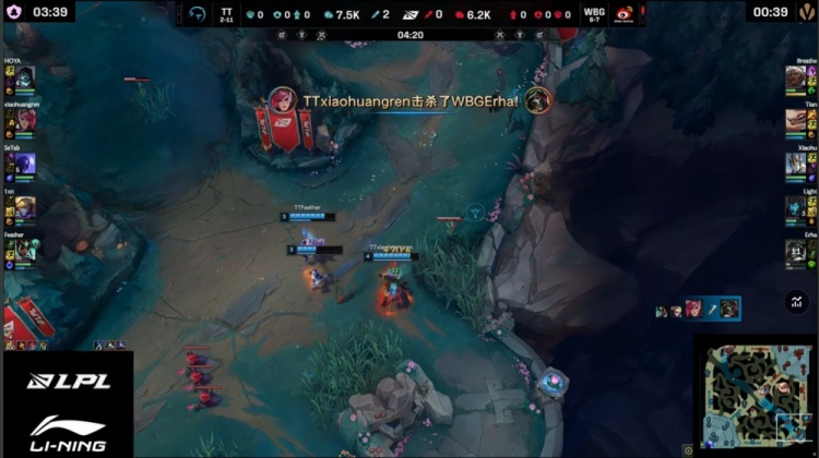 中期TT持续扩大战果,小黄人多次配合Feather卡尔玛控到关键人头,WBG节奏崩溃。18分钟小龙团TT打出1换4,随后顺利拿下荆棘厄塔汗,经济领先扩大至5k。