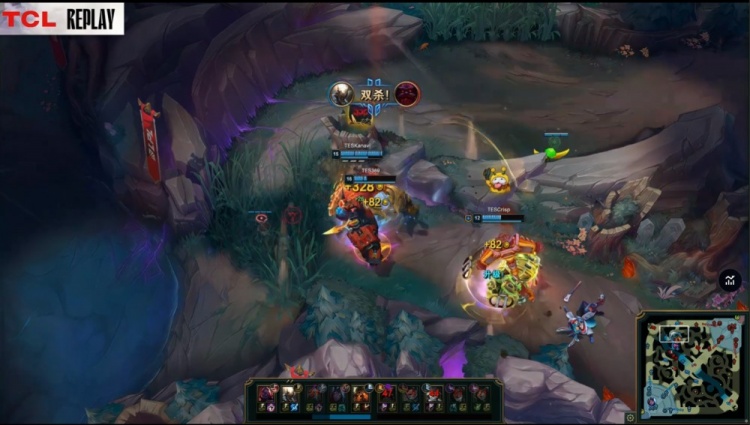 【2:55】双方打野早早来到下路gank,见面Missing妮蔻直接睡着,Kanavi潘森拿到人头TES三人追击JDG下野未果撤退。