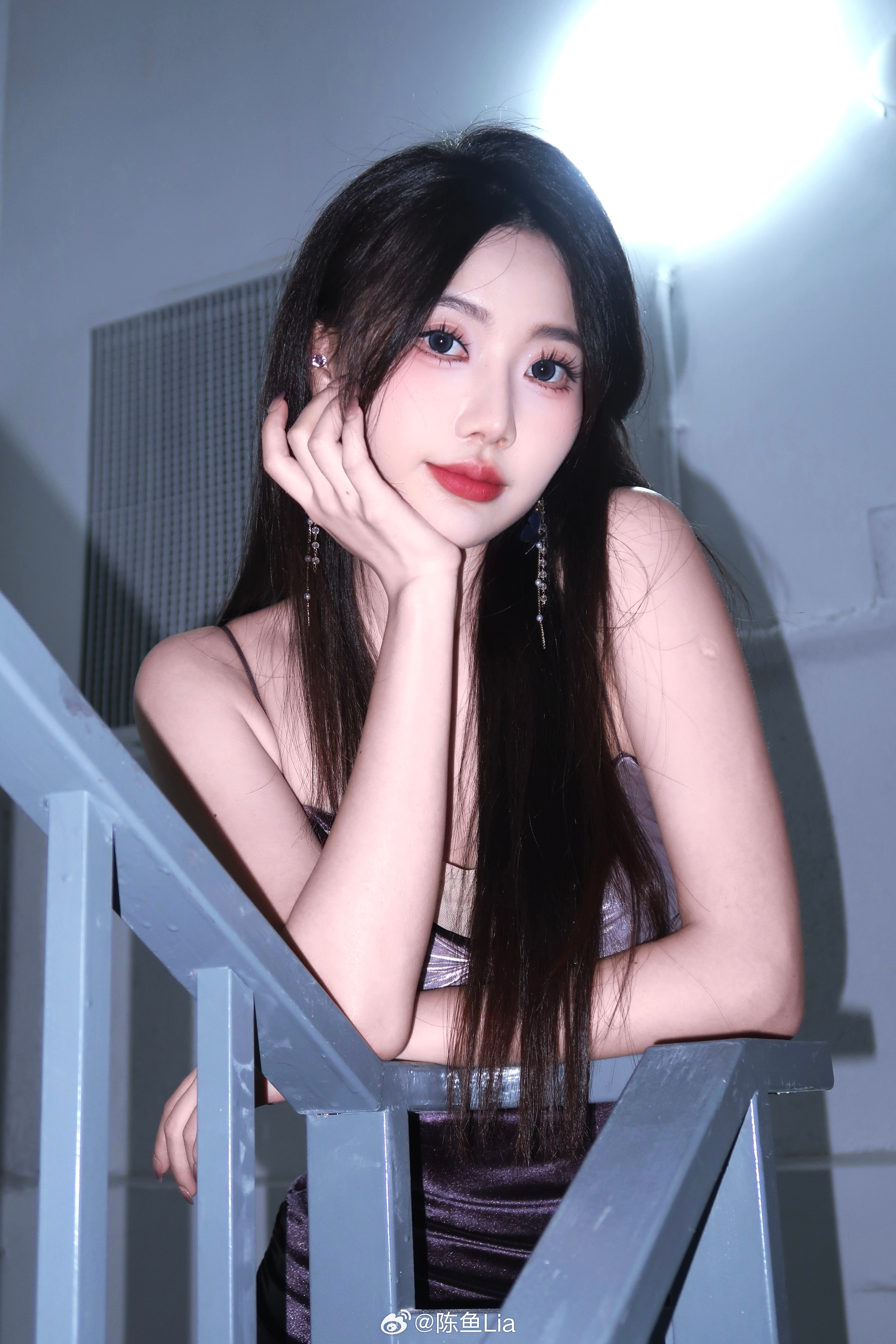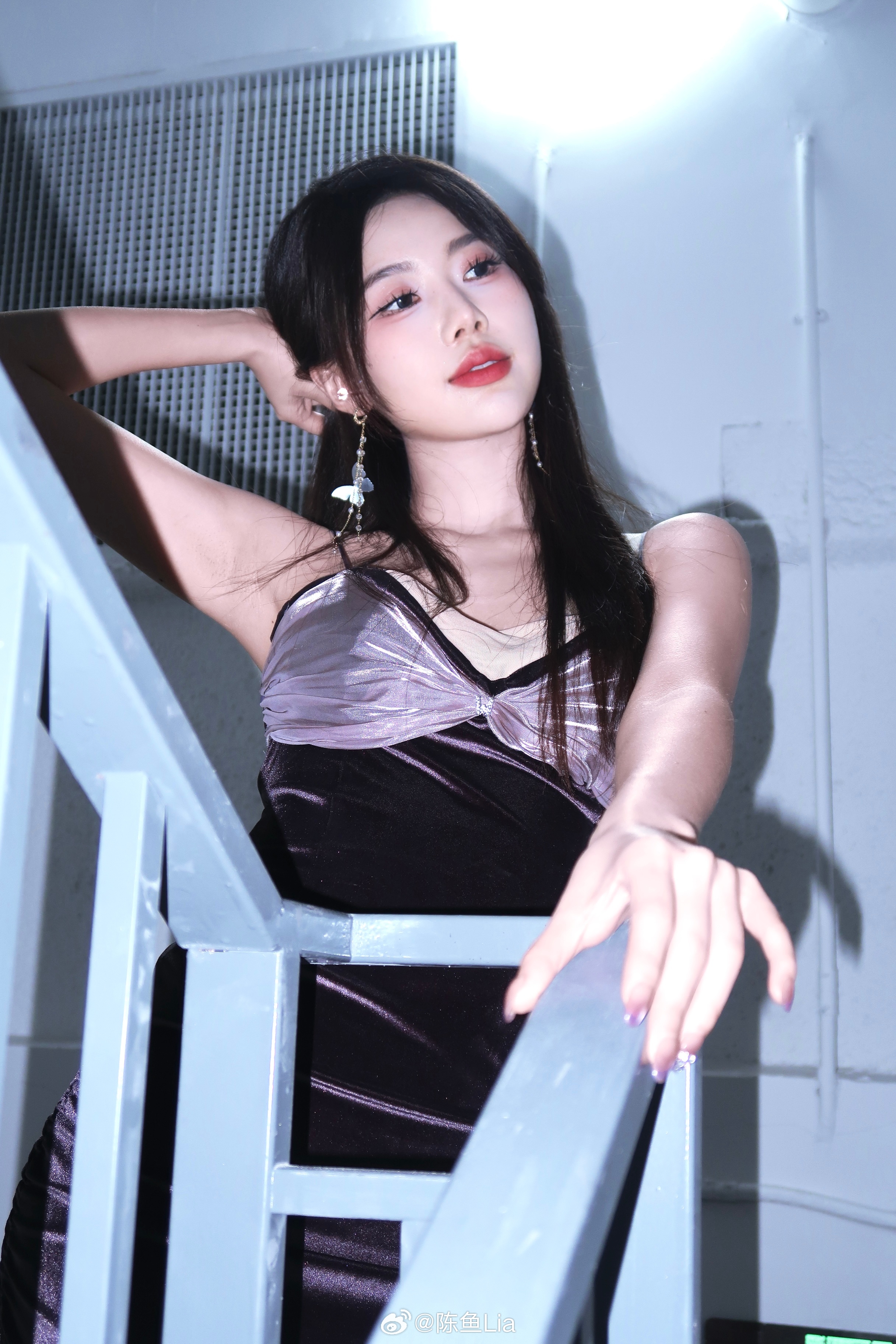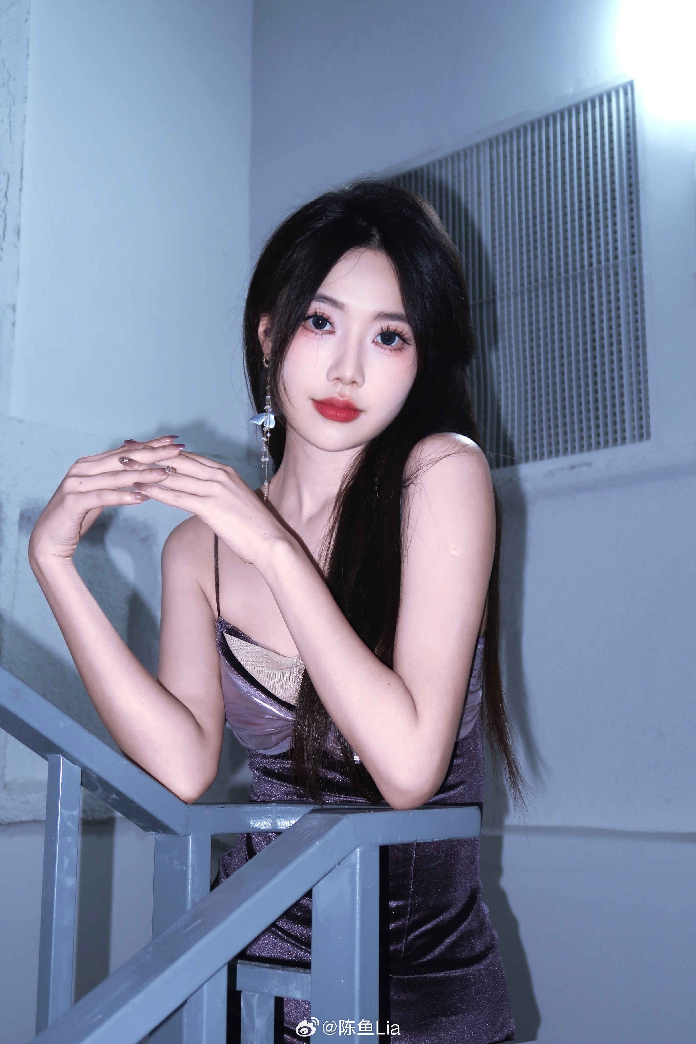 >数一数二😍陈鱼晒照:紫色包臀裙韵味十足