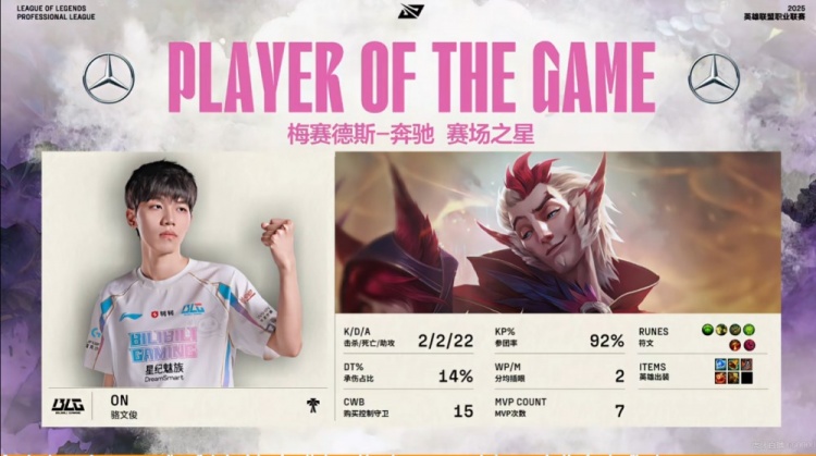 BLG:上单Bin、打野Beichuan、中单knight、下路Elk、辅助ON