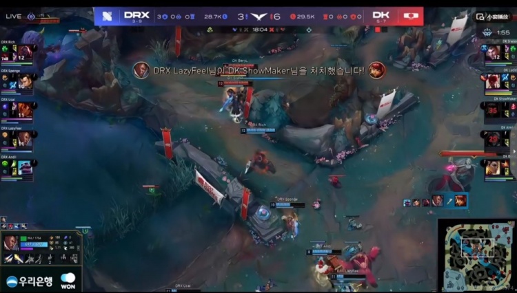 【7:06】河道遭遇Siwoo杰斯果断先手,3打3的局面下ShowMaker安妮果断闪现给大帮助Lucid盲僧拿下一血!这波DK打出0换2!