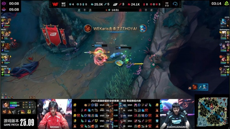 直播吧5月15日讯 2025LPL第二赛段常规赛继续进行,今日第二场比赛由WE对阵TT!