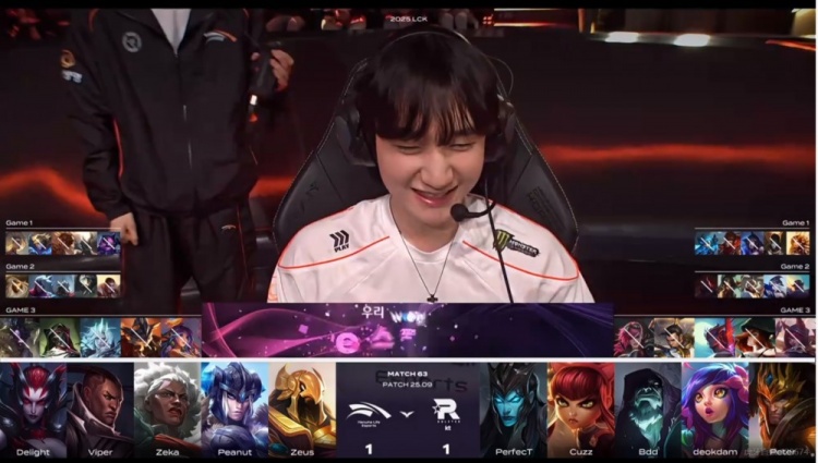 HLE:上单Zeus、打野Peanut、中单Zeka、下路Viper、辅助Delight