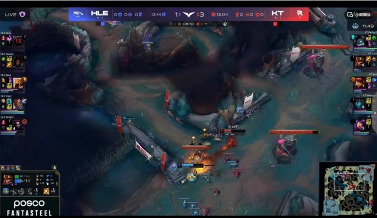 第三局HLE选了个辅助蜘蛛但是不去越塔,反而和KT的皇子安妮艾希妮蔻打前期团结果直接送头给Deokdam卡莉斯塔!中期KT也是抱团抓人,Zeus安蓓萨不知道被谁附体了继续来就有!但是Viper维鲁斯和Zeka沙皇带线稳住了HLE的经济!