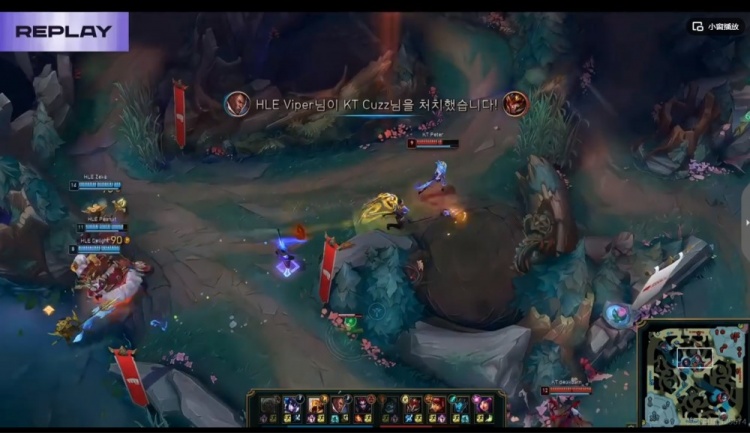 【21:18】Viper卢锡安果断扫大配合Peanut猪妹大招强杀Cuzz皇子,但是中路守塔的Zeus安蓓萨又白给了!HLE拿下荆棘厄塔汗!