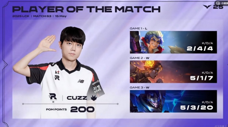 直播吧5月15日讯2025年LCK继续春季赛,今天的首场比赛是KT对阵HLE!