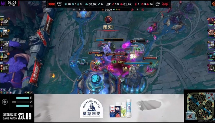 【29:35】中路团战JDG先手再次出击秒人成功,MISSING烈娜塔恶意收购又铺了三个!JDG团灭FPX,一波结束首局!