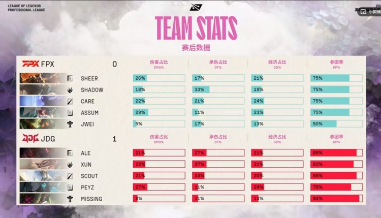FPX:上单sheer、打野shad0w、中单Care、下路Assum、辅助Jwei