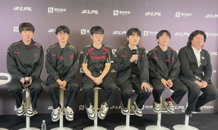 直播吧5月16日讯 2025LPL第二赛段登峰组常规赛,JDG2-0横扫FPX,赛后JDG全员接受媒体采访。