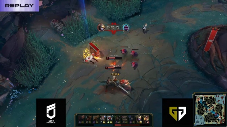 【15:14】Life布隆河道做视野又被GEN三人逮捕融化,GEN吃掉先锋,经济领先4k。