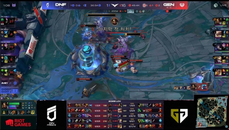 直播吧5月16日讯 2025LCK常规赛继续进行,今日第二场比赛由DNF对阵GEN!