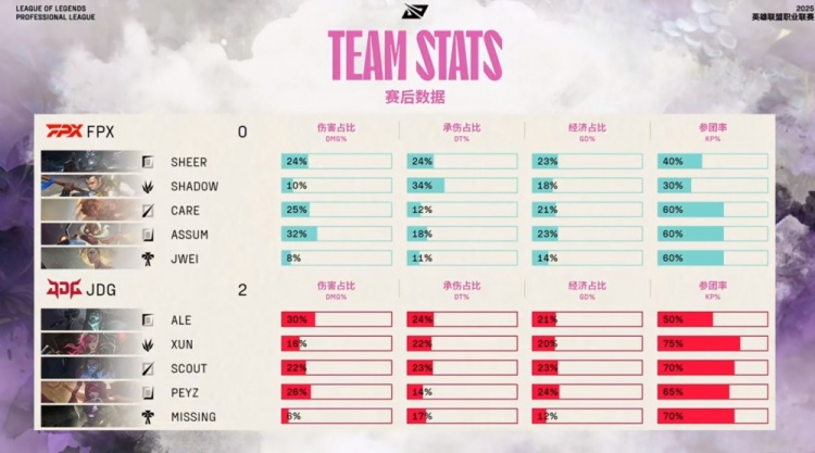 FPX:上单sheer、打野shad0w、中单Care、下路Assum、辅助Jwei