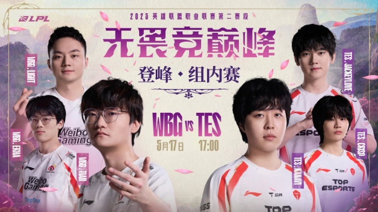 直播吧5月17日讯 2025LPL第二赛段常规赛继续进行,今日首场比赛由WBG对阵TES!