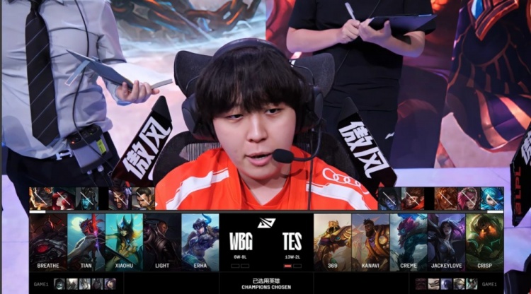 蓝色方WBG:Breathe赛恩、Tian猪妹、xiaohu永恩、Light卢锡安、Erha娜美
