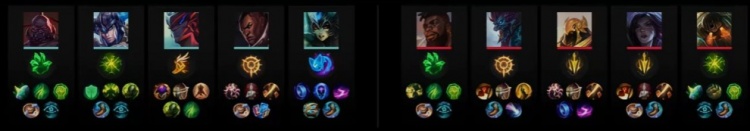 红色方TES:369奎桑提、Kanavi巨魔、Creme沙皇、JackeyLove卡莎、Crisp泰坦