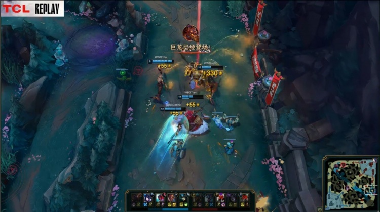 【18:18】WBG下路四越二强杀刘神与Creme得手,小天再杀Creme,WBG回头吃掉小龙,本局为火龙魂,WBG经济领先4k。