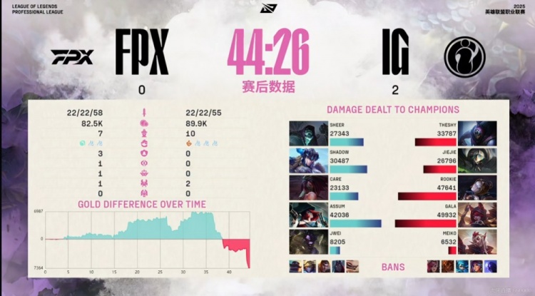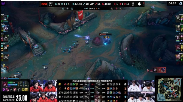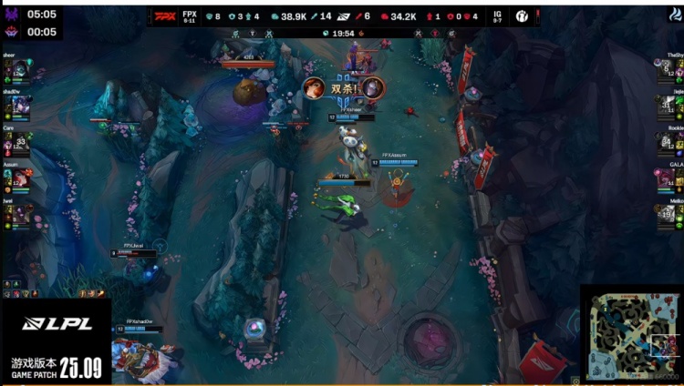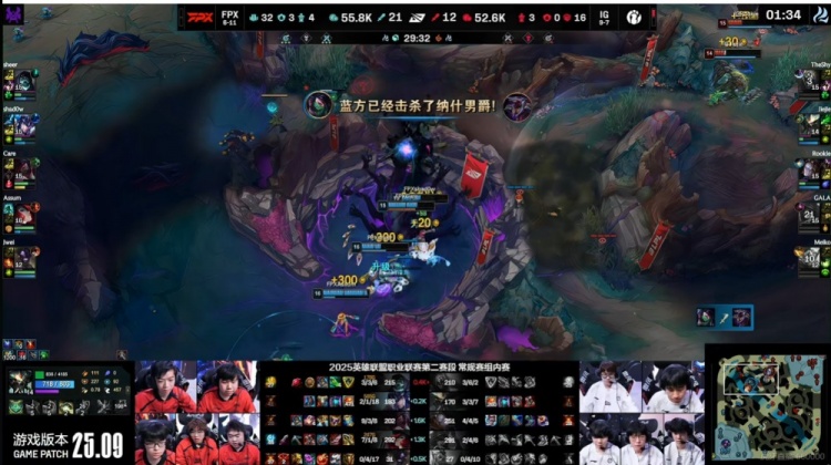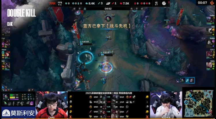 【15:55】河道FPX假眼成功钓鱼,iG下路组直接被FPX野辅强开了!Care阿卡丽再拿双杀!FPX打出0换2拿下峡谷先锋!