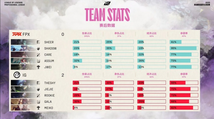 FPX:上单sheer、打野shad0w、中单Care、下路Assum、辅助Jwei
