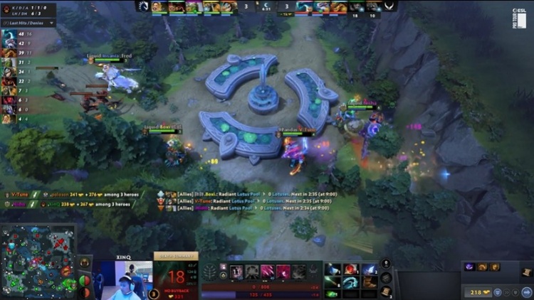 【21分钟】XG带盾上路上高,Nisha救末日自己被留,小小买活丢水人进泉水,水人掉盾起来波出来拉扯,Liquid交四个买活,XG拆剩下1个兵营后撤退。