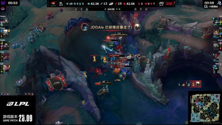 【16:14】AL抱团拿下先锋,还强杀掉了来拼惩的Xun赵信!JDG则是换掉了AL中一塔!