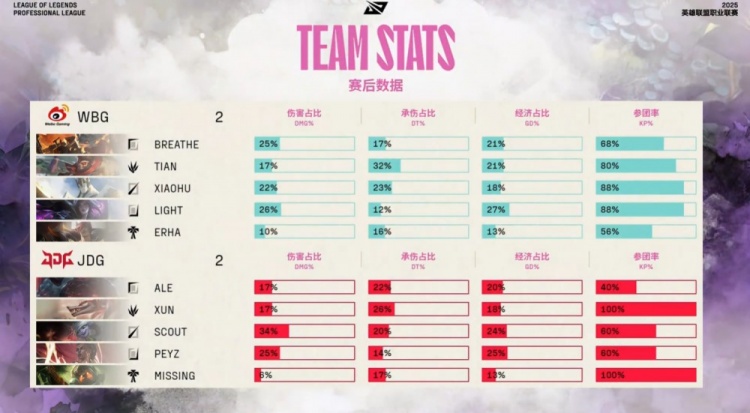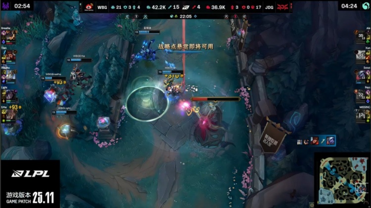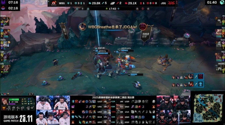 后期Breathe兰博断后击杀Scout,小炮连续阵亡,WBG再度打出0换4推掉上路水晶。最终中路团战WBG再胜,推平JDG基地,双方进决胜局!