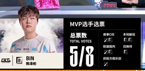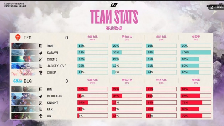 BLG:上单Bin、打野Beichuan、中单knight、下路Elk、辅助ON