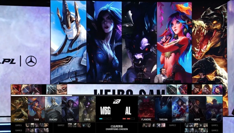 蓝色方WBG:Breathe鳄鱼、Tian莉莉娅、xiaohu加里奥、Light卡莎、Erha牛头
