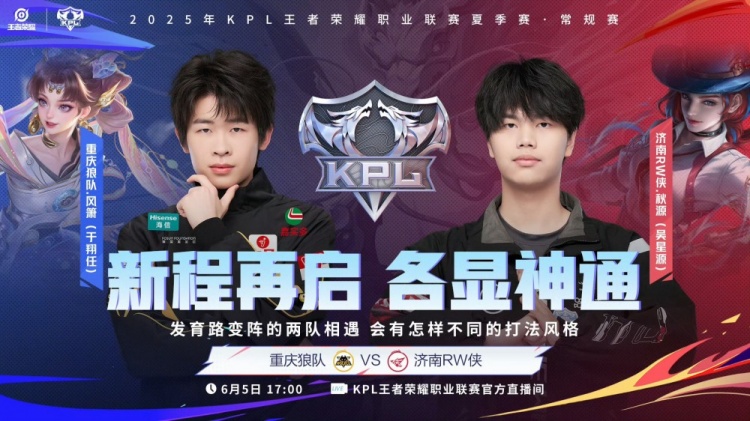 直播吧6月5日讯 2025KPL夏季赛今日第二场比赛是由重庆狼队对阵到济南RW侠!